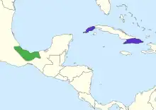 The Mexican agouti (Dasyprocta mexicana), also known as the Mexican black agouti, is a species of rodent in the family Dasyproctidae. It is native to lowland evergreen forest and second growth in southern Mexico (Veracruz, Oaxaca, Chiapas and Tabasco), but has also been introduced to Cuba. This critically endangered species is threatened by habitat loss.[1] Its overall blackish color separates it from the only other agouti found in Mexico, the Central American agouti.[2]