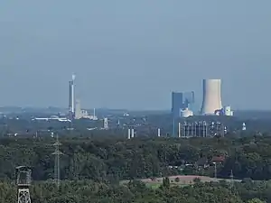 Datteln Power Station (German: Kraftwerk Datteln) is a modern coal-fired thermal power station in Datteln, Recklinghausen, 12 km north of Dortmund, North Rhine-Westphalia, Germany. It comprises four units with a total capacity of approximately 1,419 MW gross. Units 1-3 were built between 1964 and 1969 and were decommissioned in 2014. A characteristic of this power station is the fact that the most recently built unit, Unit 4, does not have a waste gas flue. Instead, the desulphurised flue gases are expelled using the updraught from the existing 180 m (590 ft) cooling tower. The power station is operated by Uniper.