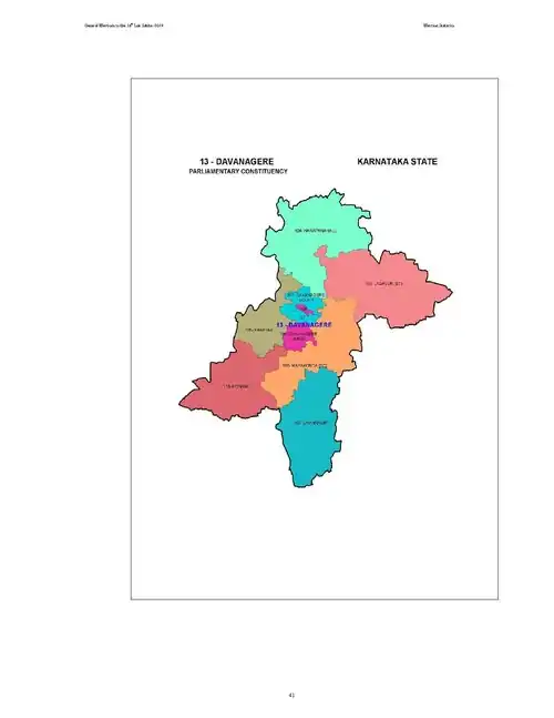 | Assembly constituencies | Jagalur Harapanahalli Harihar Davanagere North Davanagere South Mayakonda Channagiri Honnali |