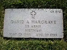 - ↑ "United States Social Security Death Index," index, FamilySearch (https://familysearch.org/pal:/MM9.1.1/JG37-6P8 : accessed October 25, 2013), D A Hargrave, August 15, 1988; citing U.S. Social Security Administration, Death Master File, database (Alexandria, Virginia: National Technical Information Service, ongoing).