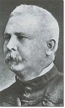 Moriarty was born in Ireland on 6 March 1837 as the sixth son of James Moriarty and Mary Catherine Bridget Barry in Kilmallock, County Limerick.[1] At the age of 16, he signed up for the 6th West York Militia as a Lieutenant.[1] On 19 December 1857, he was gazetted to an ensign at the 2nd Battalion of the 6th Regiment and brought over 100 men to the regiment.[1] In April 1870, he achieved an unattached company due to his extensive experience.[1] Moriarty served with his regiments at Gibraltar, Corfu and Zante. While at Jamaica, he was offered an exchange to the 1st Battalion, to which he accepted and headed for Ireland then later, went Queenstown to Bombay.[1]