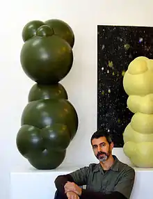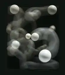 His stated conceptual focus is on dynamic non-linear and interdependent relationships found in nature and society, juxtaposed with the human desire to control, manipulate and predict outcomes.[1][2] Fried’s works have been exhibited in the US, Europe, Asia and Australia.[3] Major works have been included with artists Rebecca Horn, Robert Rauschenberg and Alexander Calder in an extensive traveling museum exhibition; "Drehen, Kreisen, Rotieren",[4][5] and in "Genesis—The Art of Creation" with Joseph Beuys, Antony Gormley, Bruce Nauman at the Zentrum Paul Klee, Switzerland.[6][7] His works are in international collections including a commissioned interactive installation on permanent view in Germany’s comprehensive kinetic art collection at the Kunstmuseum Gelsenkirchen.[8][9] Fried first became known to the New York established art world in the early 1980s through his activities as a painter in the street art group AVANT,[10][11][12][13][14] who alongside the then emerging artists Richard Hambleton, Keith Haring and Jean-Michel Basquiat began the post-graffiti street art movement in NYC.[15] His efforts are mainly concentrated in Europe since relocating his studio from NYC to Düsseldorf in 1989.[3]