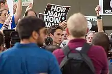 After the school shooting, Hogg emerged as a leader in the 2018 United States gun violence protests.[33] Along with Alfonso Calderon, Sarah Chadwick, X González, Cameron Kasky and other students, he turned to the media to talk about their role as survivors in the shooting and voice his opinion on gun control and gun violence.[34] He called on elected officials to pass gun control measures[35] and has been a vocal critic of officials who take donations from the NRA, and he has been urging them to compromise on legislation to save lives.[36]