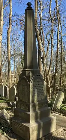 He died on 25 January 1897 and is buried in a family grave on the eastern side of Highgate Cemetery. He was succeeded by his son in the family business.