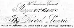 David Laurie (b.Netherton 1833 - d. Brussels 1897) - was a distinguished 19th century violin collector (known worldwide, as good friend of J. B. Vuillaume).[1]