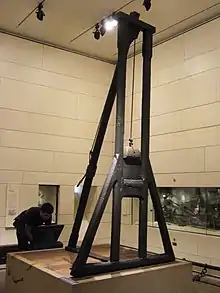 In 1564, Adam Schang and Patrick Schang with George Tod made the guillotine known as the Maiden which survives in the National Museums of Scotland. Patrick Schang was paid two pounds for his "whole labours and devising of the timber work".[6]