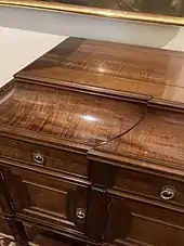 At the age of 35, Wilson suffered from a mysterious and severe throat condition. His medical advisors told him not to speak for six months and to wrap a handkerchief over his mouth. To occupy himself during this period while not working, Wilson took to making furniture. The furniture made was to designs of his brother Hardy Wilson and many of the working drawings are held by the National Library of Australia.[24] His throat recovered fully but he continued to make furniture having taken lessons from a carpenter and found a new hobby. Twenty pieces of his furniture were made between 1914 and 1925, and are all held in private family collections or by National Trust of Australia in NSW. The June 1926 issue of Art in Australia illustrates five examples of his work[25] and nine photographs and measurements are held by the National Library.[26] Wilson, and his brother, decided that all pieces would be made in solid Australian timbers and not to use veneers.[3]