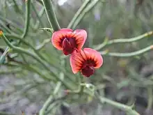 Leafless bitter-pea grows in forest and woodland and heath in western Victoria and the south-east of South Australia.[2][3][4]