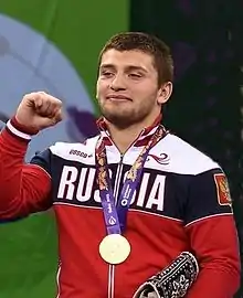 Davit Gochaevich Chakvetadze (Russian: Давит Гочаевич Чакветадзе, Georgian: დავით ჩაკვეტაძე; born 18 October 1992) is a Georgian-born Russian Greco-Roman wrestler.[1] He moved to Russia in 2013 by the recommendation of Russian national Greco-Roman coach Gogi Koguashvili.[2] Chakvetadze won gold at the 2016 Summer Olympics in the 85 kg category.
