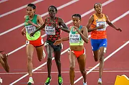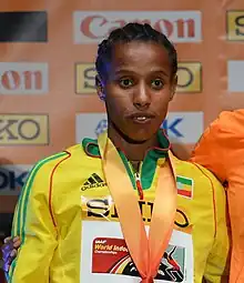 Dawit Seyaum Biratu (born 27 July 1996)[1] is an Ethiopian middle- and long-distance runner who specialises in the 1500 metres. She placed fourth at the 2015 World Championships and won the silver medal at the 2016 World Indoor Championships. Dawit took a bronze in the 5000 metres at the 2022 World Championships.