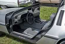The DeLorean Motor Company (DMC) was an American automobile manufacturer formed by automobile industry executive John DeLorean in 1975.[1] It is remembered for the one model it produced—the stainless steel DeLorean sports car featuring gull-wing doors—and for its brief and turbulent history, ending in receivership and bankruptcy in 1982. In October 1982, John DeLorean was videotaped in a sting operation agreeing to bankroll drug trafficking, but was acquitted in the subsequent trial on the basis of entrapment.[4]
