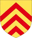 The early Clares appear to have used a coat of arms that was chevronny, as seen in the seals of Gilbert, 1st Earl of Pembroke, and of his niece, Rohese, Countess of Lincoln. Richard 'Strongbow', 2nd Earl of Pembroke, would simplify this to a coat with three chevronels, matching the three red chevrons on a gold background that would be the arms of the Clare Earls of Hertford.[11]