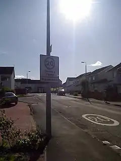![]() The road entrance to the Inverewe phase of Deaconsbank from the A727 | |