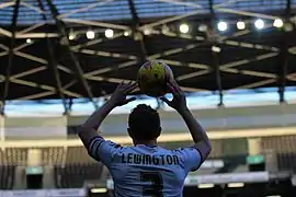 Lewington takes a throw in against Barnsley in 2015