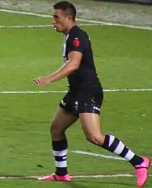 In round 1 of the 2013 NRL season, against the Canberra Raiders, Whare made his club debut for the Penrith Panthers at fullback in a 32–10 win at Penrith Stadium.[15] Whare started the season playing at fullback until he cemented a centre position from round 7 onwards. In round 7, against the Parramatta Eels, Whare scored his first try club try for Penrith in the 44–12 win at Penrith Stadium.[16] For the 2013 ANZAC Test, Whare was selected to play for New Zealand at centre in the Kiwis 12–32 loss against Australia.[17] Whare finished the 2013 NRL season with him playing in all of Penrith's 24 matches and scoring five tries. Whare was selected in the New Zealand 2013 World Cup squad, playing in 5 matches. He scored 2 tries against Papua New Guinea in the Kiwis 56–10 win.[18] Whare played at centre in the Kiwis 2–34 loss to Australia in the World Cup final at Old Trafford.[19] On 13 December 2013, Whare agreed to a three-year contract extension with the Penrith Panthers, until the end of the 2017 season.[20][21]