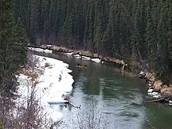 The Dease River flows through northwestern British Columbia, Canada and is a tributary of the Liard River. The river descends from Dease Lake, though its ultimate origin is in the headwaters of Little Dease Creek at Snow Peak, approximately 50 kilometres (31 mi) west of the lake. The river flows 265 kilometres (165 mi) generally north-eastward, draining into the Liard River near Lower Post, British Columbia. Large sections of the river parallel the Cassiar Highway, helping to make it a popular destination for canoeists, kayakers, and rafters.
