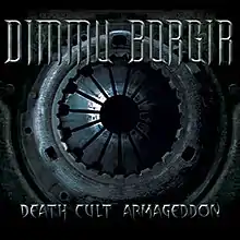 Death Cult Armageddon is the sixth studio album by Norwegian symphonic black metal band Dimmu Borgir, released on 9 September 2003. It has since sold over 100,000 copies in the United States; the first album under Nuclear Blast to do so; and debuted on the Billboard 200 chart at number 169.[3] The song "Progenies of the Great Apocalypse" was released as a single with an accompanying music video. This would also be the last album to have Nicholas Barker on drums.
