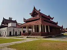 - ↑ နန်းမစနုဆောင် အလယ်ခန်းမ, Nanma Sanu Hsaung Alekhanma; central hall of the main building connecting two main halls