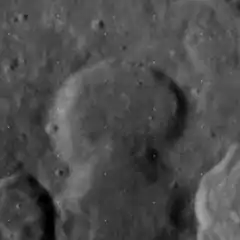Debes is a lunar impact crater that is located to the north of the Mare Crisium, in the eastern part of the Moon's near side. It was named after German cartographer Ernst Debes.[1] It lies just to the northwest of the crater Tralles and the prominent Cleomedes.
