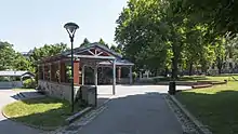 As a pedestrian way (Fußweg), the Deckergasse crosses the Wilhelmsdorfer Park,[2] popularly known as the Decker Park, which it divides,[3] and the only significant building on it is a school, now called the Volksschule Deckergasse, or Parkschule VS Deckergasse, at number 1.[4] When the park was redesigned in 1990, the Deckergasse was left open and was integrated into it.[3]