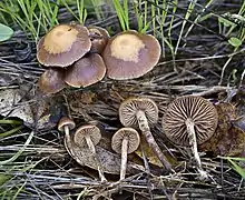 - ↑ Moncalvo JM, Vilgalys R, Redhead SA, Johnson JE, James TY, Catherine Aime M, Hofstetter V, Verduin SJ, Larsson E, Baroni TJ, Greg Thorn R, Jacobsson S, Clémençon H, Miller OK Jr (2002). "One hundred and seventeen clades of euagarics". Molecular Phylogenetics and Evolution. 23 (3): 357–400. doi:10.1016/S1055-7903(02)00027-1. PMID 12099793.