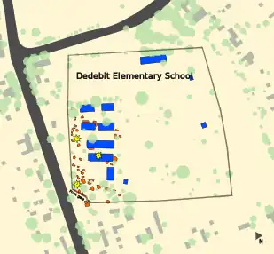 School buildingsTentsBombing locationsTreesOther buildingsRoad