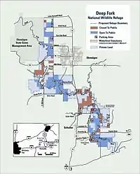 - 1 2 "Deep Fork National Wildlife Refuge" http://www.wildernet.com/pages/area/cfm?areaID=OKNWRDF&CU_ID=1, accessed 20 Jun 2012