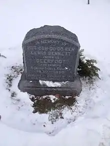Deerfoot's obituary in The New York Times illustrated his worldwide fame during his lifetime, even though most of his feats took place in England and abroad.[10] Deerfoot's grave was moved in 1901, from an unmarked grave to his current resting place in Forest Lawn Cemetery in Buffalo, New York.[11]