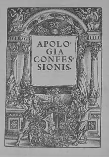 The Apology of the Augsburg Confession was written by Philipp Melanchthon during and after the 1530 Diet of Augsburg as a response to the Pontifical Confutation of the Augsburg Confession, Charles V's commissioned official Roman Catholic response to the Lutheran Augsburg Confession of 25 June 1530. It was intended to be a defense of the Augsburg Confession and a refutation of the Confutation. It was signed as a confession of faith by leading Lutheran magnates and clergy at the meeting of the Smalkaldic League in February, 1537,[1] and subsequently included in the German [1580] and Latin [1584] Book of Concord. As the longest document in the Book of Concord it offers the most detailed Lutheran response to the Roman Catholicism of that day as well as an extensive Lutheran exposition of the doctrine of Justification.