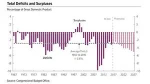 - Deficits would begin to exceed $1 trillion each year starting with 2019, reaching $1.7 trillion by 2028.