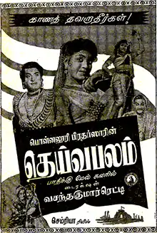 Deiva Balam (transl. Divine Power) is a 1959 Indian Tamil-language film directed by P. Vasanthakumar Reddy. The film stars K. Balaji and Jayashree.[2] This film is partly coloured by Gevacolor.