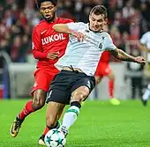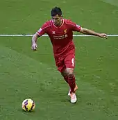 Lovren regained his place in the lineup for the first three games of the 2015–16 season and performed well securing three clean sheets and seven points. However, following a pair of defeats to West Ham United and rivals Manchester United in which the defence conceded six goals, Lovren again lost his place to Mamadou Sakho.[33] On 8 November he came on as a substitute for Sakho in a 2–1 defeat to Crystal Palace at Anfield, with Sakho sustaining a knee injury that ruled him out for two months.[34] On 13 December, in a 2–2 draw against West Bromwich Albion, Lovren was stretchered off the pitch in the 79th minute due to injury and was replaced by Divock Origi.[35] The following 14 April, Lovren scored a stoppage-time winning goal in a 4–3 Europa League quarter-final win over Borussia Dortmund.[36] Having endured a difficult start to his career at Liverpool, by the end of the 2015–16 season under Jürgen Klopp, Lovren was described as having transformed into a "calm and composed" leader on the pitch by Liverpool Echo.[37]