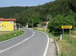 Dekani was first attested in written sources in 1328 as Decani (and in 1423 as Villae Canis). The name is derived from the noble family de Cani. Locally, the name was misunderstood as derived from Italian cane 'dog', leading to the local designation Pasja vas (literally, 'dog village'), the demonym Pesjan, and the associated adjective pesjanski.[3] Another theory, according to Salvator Žitko of the University of Koper, is that the settlement got its name after its owner, the Albanian nobleman Giovanni Dukagjini, in 1480 based on the Venetian archives of the city of Koper.[4]