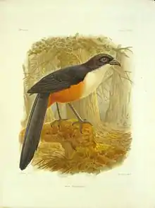 Delalande's coua (Coua delalandei), also known as the snail-eating coua or Delalande's coucal, is an extinct species of non-parasitic cuckoo from Madagascar. It was only known to science as an extant bird for a very short time in the early 19th century. There is some disagreement about its area of occurrence: Although there were claims that the bird was also found in the area of Fito and Maroantsetra as well as near Toamasina (Tamatave), i.e., the coastal areas of northern Toamasina Province, all specimens with good locality data are from the offshore island of Nosy Boraha. As the vernacular name implies, land snails were a favored food item of this species.