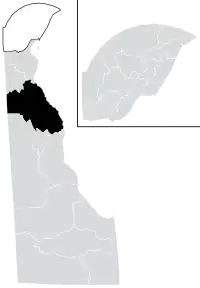 Like all districts in the state, the 14th Senate district is located entirely within Delaware's at-large congressional district. It overlaps with the 8th, 9th, 11th, 28th, and 29th districts of the Delaware House of Representatives.[6] The district borders Maryland to the west and New Jersey along the Delaware River.[1]