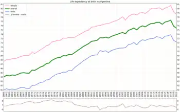 The median age is approximately 32 years,[1] and life expectancy at birth is of 78 years.[5] According to an official cultural consumption survey conducted in 2006, 42.3% of Argentines speak English (though only 15.4% of those claimed to have a high level of English comprehension), 9.3% speak Portuguese[7] and 5.9% speak Italian.[8]