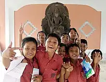 Indonesian students during a school excursion to a museum; Indonesia currently possesses a relatively young population.