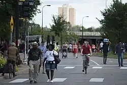 People walking and biking on Franklin Avenue in 2016.