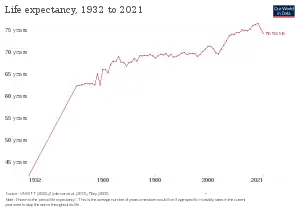 - ↑ "GHO – By category – Life expectancy and Healthy life expectancy – Data by country". apps.who.int.