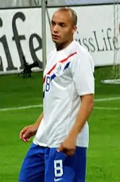 De Zeeuw usually played as a defensive midfielder and in the national team, he had to compete with the likes of Mark van Bommel, Orlando Engelaar, and Nigel de Jong in that position.[179] De Zeeuw made his first start for Netherlands, starting a match and played 58 minutes before being substituted, in a friendly against South Korea on 2 June 2007.[180] In a match against Bulgaria on 8 September 2007, he started the whole game and was a key player throughout the match, as Oranje won 2–0.[181] De Zeeuw started in the remaining UEFA Euro 2008 qualifying matches, as he helped Netherlands qualify for the UEFA Euro 2008.[182] In March 2008, de Zeeuw said in an interview with Algemeen Dagblad that he hoped to make a good impression during UEFA Euro 2008 to earn a transfer to another club.[183] For the first six months of 2008, de Zeeuw continued to feature regularly for the national side, playing in the midfield position.[184] Two months later, he was included in the Oranje's provisional squad.[185] De Zeeuw made the 23 men squad ahead of the tournament despite suffering setback to his injury.[186] However, his appearance was limited to a single appearance in the group stage against Romania.[187]