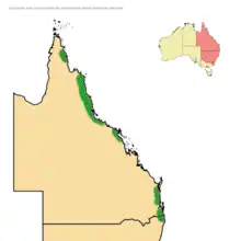 The species occurs in and near rainforest, from Cape York Peninsula south to northern New South Wales in Australia and also occurs in the Moluccas and Indonesia.[3][5] It is an early coloniser in rainforest gaps, such as alongside water courses and roads, around tree falls, and in man-made clearings.[16][17] The seeds germinate in full sunlight after soil disturbance. Although common in Queensland, it is rare in the southernmost part of its range and is listed as an endangered species in New South Wales.[18][19]