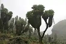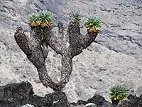 Dendrosenecio kilimanjari is a giant groundsel found on Mount Kilimanjaro in Africa, below 4,000 metres (13,000 ft).