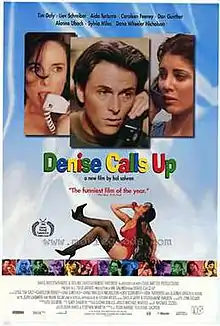 Denise Calls Up is a 1995 American comedy film written and directed by Hal Salwen.[2] It has an ensemble cast which includes Liev Schreiber, Timothy Daly, and Alanna Ubach. The plot revolves around a group of friends in New York City who, while working at their PCs and laptops and keeping in touch by phone and fax, never seem to be able to get together. The film won the Jury Prize at the Deauville American Film Festival and a Special Mention for the Camera d'Or at the Cannes Film Festival.