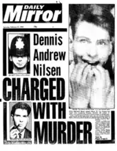 Cattran contacted the Daily Mirror on 10 February,[122] informing the newspaper of the ongoing search for human remains at Cranley Gardens, leading the newspaper to break the story and spark intense national media interest.[122][123] By 11 February, reporters from the Mirror had obtained photographs from Nilsen's mother in Aberdeenshire,[124] which appeared on their front page the following day.[n 10]