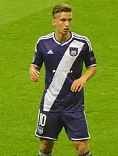 Praet debuted in Anderlecht's first team on 21 September 2011 starting in the Belgian Cup against Lommel United and provided two assists in a 4–0 win.[9] In the next round of the cup he scored his first official goal for Anderlecht, against Rupel Boom FC. Not long after, on 30 October, he also made his debut in the Belgian Pro League as a substitute for Fernando Canesin while playing against Lierse SK. In March 2012, Praet signed a new contract until 2015.[10]