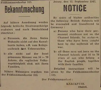 - ↑ "GUERNSEY (DEPORTATIONS)". Parliamentary Debates (Hansard). HC Deb 21 January 1943 vol 386 cc288-9. 21 January 1943.