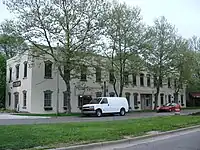 At the northeast corner of Cross and River Streets stands the Thompson Block, a historic building which was used as barracks in the Civil War. The Thompson Block suffered a bad fire early in the morning on September 23, 2009,[17] and the temporary supports reaching into adjacent streets, installed shortly after the fire to stabilize the structure, blocked westbound traffic on Cross Street for more than three months[18] and have resulted in legal tussles between the city and the property owner.[19]
