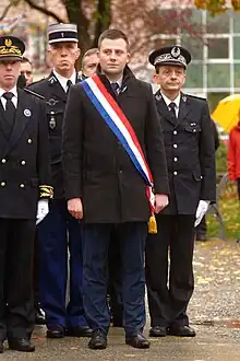 It is common for deputies, wearing their distinctive sash, to place themselves at the front of demonstrations, with the aim of being recognisable to police forces and protecting individuals behind them. At a 2023 demonstration in Sainte-Soline, Deux-Sèvres, deputies formed a line in front of police on site to allow medical teams to evacuate wounded participants who had clashed with police forces.[7][8] Wearing an official sash without the proper rights constitutes a punishable offence.