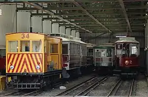 As part of the management's continued commitment to refurbish and improve facilities on the railway, the upper car sheds which had been built between 1894 and 1924 were completely demolished and new versions constructed on the same site. This was not without its controversy as local group the Manx Electric Railway Society were vocal in their support for alternative accommodation, ultimately being ignored. The new shed was not without problems initially, the two lower (left hand) roads being on such a lower level than the others that they could not be rail-connected. The overhead wiring also caused difficulties but ultimately the new fully functioning carshed is a vast improvement on the original which had decayed beyond economic repair.
