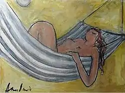 Derek Maynard Davis (24 February 1926 – 3 September 2008) was an English artist, working in the media of painting and pottery. He was born in Wandsworth, South London, where he was educated at Emanuel School. He joined the King's Royal Rifle Corps in 1943, to fight in World War II.[1] After the war he entered the Central School of Arts and Crafts in London.[2] Together with his friend Eric James Mellon he then started a pottery workshop in Hillesden, Buckinghamshire.[3] Later he left to work on his own, and moved to Arundel, West Sussex. Here he developed his ceramics further, coming up with several innovative techniques.[3] An eye operation in 1994 left him unable to look through the hole in the pottery kiln, and after this he started focusing on painting instead.[1]
